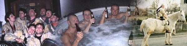 Innerhalb kürzester Zeit scharten sie weitere 16 Gleichgesinnte um sich und gaben den Startschuß für ein extravagantes Projekt. Während Uwe Barschel sein Ehrenwort abgab, trafen wir uns zu den ersten Proben in der Aula des Nellenburg Gymnasiums. Obwohl jeder aus einer anderen Ecke Stockachs kam, kannten wir uns doch durch die gemeinsamen fasnachtlichen Erlebnisse der Vergangenheit.
